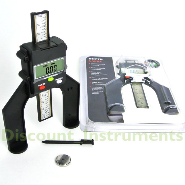 Digital depth gauge for router tables and saw benches. Horizontal and vertical measuring.