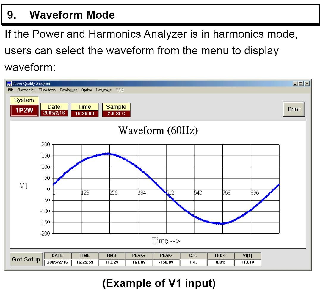 • Display of Waveform with Peak Values (1024 Samples/Period)